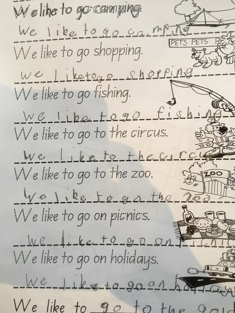 Tracing and copying is asking the trainee to trace on the letters/numbers that are already printed on papers to teach them how to write them. Although it is the most widely used method of teaching how to write letters and numbers for children of disabilities, it’s not very helpful for people with considerable visual processing issues. Such as my client, who after so many years of tracing, working really hard, had put great effort in it and yet still struggling. It’s impossible to write the letters independently if the brain hasn’t formed the image of the letter clearly, disregarding how many times tracing has been tried. It will only happen when a clear image is formed in the brain. My way is to help forming the image. When someone can observe the subtle difference between similar letters/figures, writing it down would be a very easy thing.